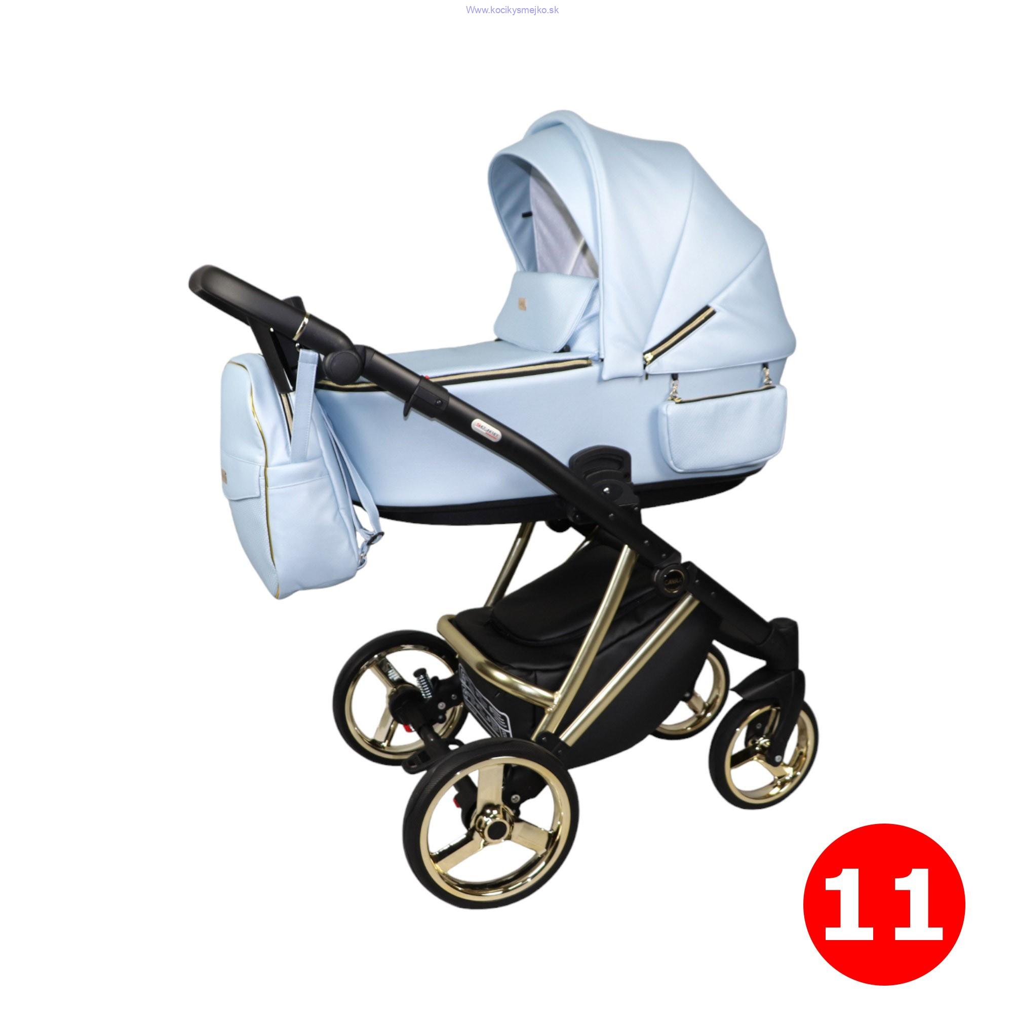 Sojan Cavax Elegant 7 v kombinácii svetlo modrej a zlatej prináša rodičom nielen praktický a spoľahlivý kočík, ale aj krásny dizajn, ktorý zaujme na prvý pohľad. Luxusný vzhľad a kvalitné prevedenie zaistí komfort a bezpečie pre vaše dieťa, či už vyrážate na prechádzku alebo na cestu do mesta.