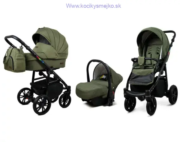 - trojkombinácia - hlboký kočík + športový kočík + kočík s autosedačkou vo farbe kočíka (autosedačka je za príplatok)